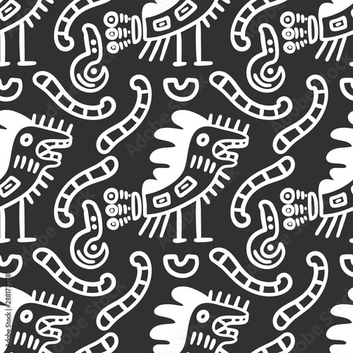 © trihubova, Obraz premium Seamless aztec vector pattern. Tribal traditional indian fabric design. Folk vintage illustration.