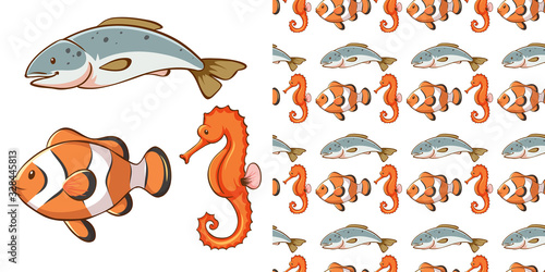 © GraphicsRF, Fototapeta premium Seamless background design with sea creatures