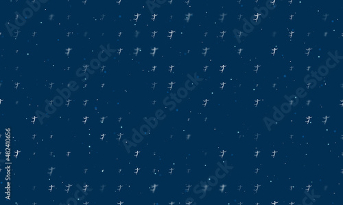 Fototapeta premium Seamless background pattern of evenly spaced white figure skating symbols of different sizes and opacity. Vector illustration on dark blue background with stars