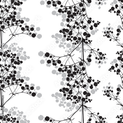 © zzayko, Naklejka premium Seamless background with branches of beautiful hand-drawn silhouette gypsophila