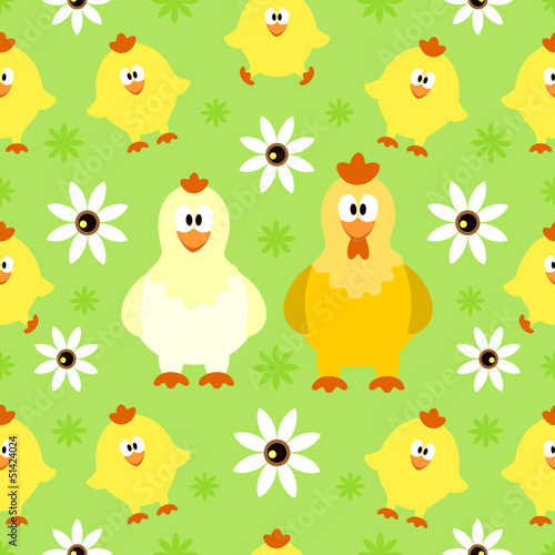 © dicraftsman, Naklejka premium Seamless background with funny chicken