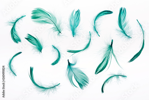 Fototapeta premium seamless background with green lightweight feathers isolated on white
