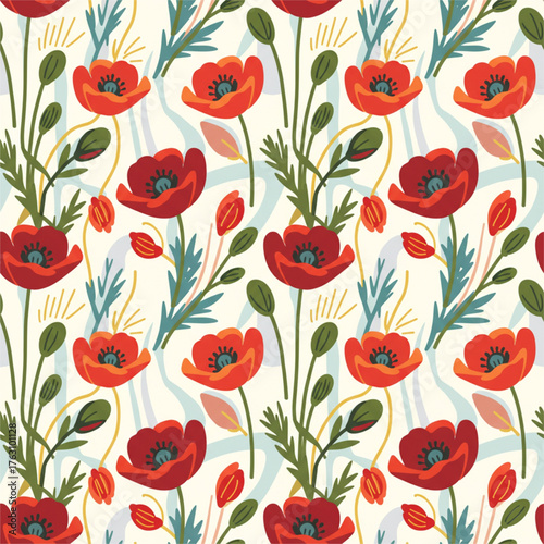 Fototapeta premium seamless background with red poppies