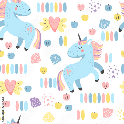 Fototapeta premium Seamless background with unicorns for children