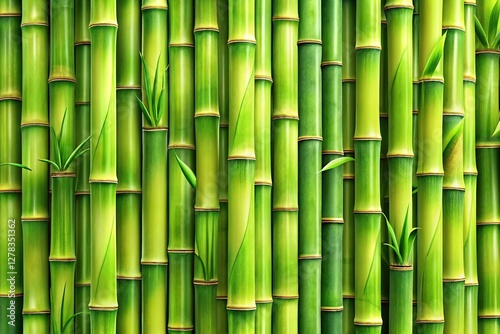 © Sunee, Fototapeta premium Seamless Bamboo Pattern Background Texture - Elegant Green and Natural Design