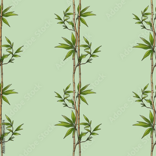 © Khrystyna Turchyn, Naklejka premium Seamless Bamboo Pattern Sticks Big Design on Pastel Green Background