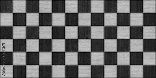 © yanee, Fototapeta premium Seamless barber shop pattern illustration. Black and white texture of wood use as natural background