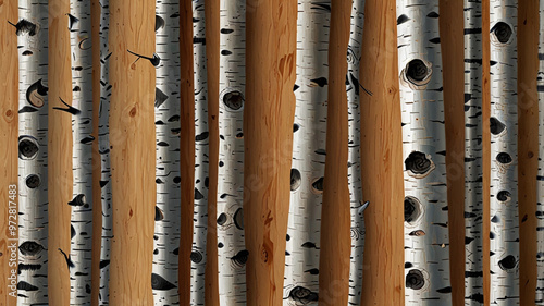 Fototapeta premium Seamless Birch Tree Pattern on Wood Grain Background for Graphic Design