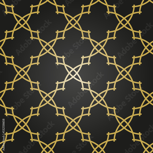 Naklejka premium Seamless black and golden vector ornament in arabian style. Geometric abstract background. Grill with pattern for wallpapers and backgrounds