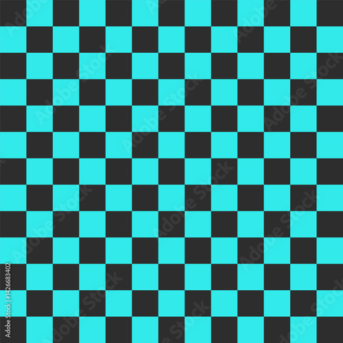 Fototapeta premium Seamless black and turquoise chess checkered grid pattern in Memphis style....