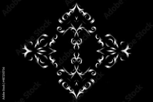 © Ainur, Fototapeta premium seamless Black and white caleidoscope gradient flower art pattern of indonesian traditional tenun batik ethnic dayak ornament for wallpaper ads background sticker or clothing
