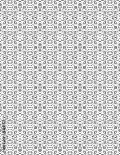 © MH Creation House, Fototapeta premium Seamless Black and White Geometric Floral Pattern Background