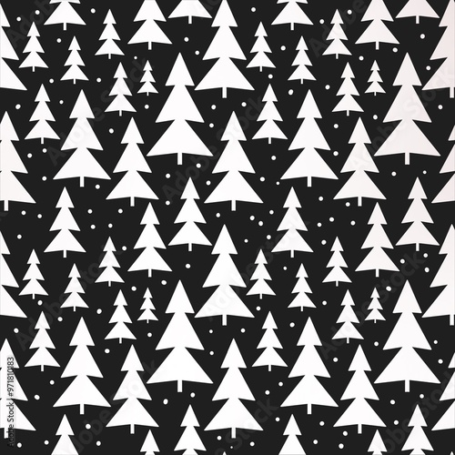 Fototapeta premium seamless black and white geometric pattern with spruce trees