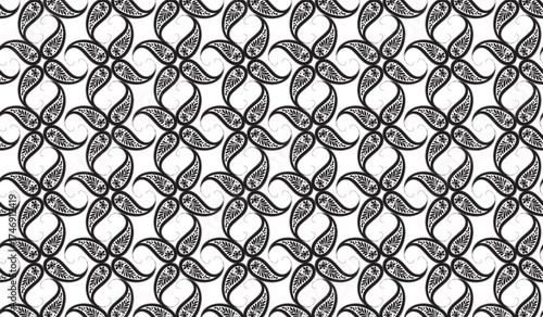 Fototapeta premium Seamless Black and White Paisley Pattern Vector: Classic Bandana, Textile, or...