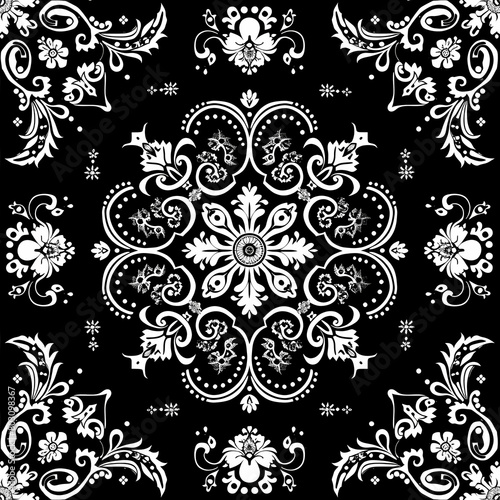 © ak159715, Fototapeta premium Seamless black bandana patterns vector image, Repeating black and white flower design