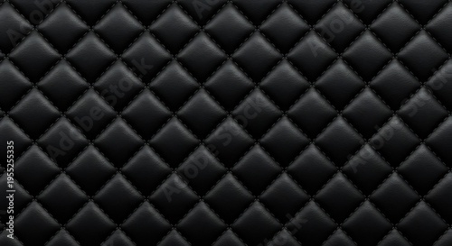 Fototapeta premium Seamless Black Diamond Quilted Upholstery Texture Background.