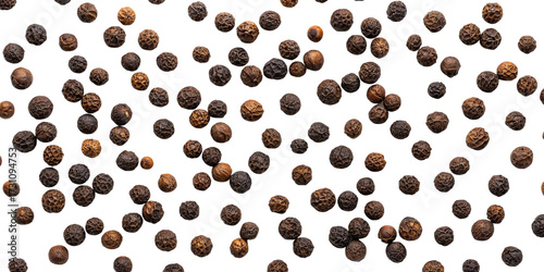 © Arifue, Obraz premium Seamless Black Peppercorn Pattern on Transparent Background Realistic Spice Texture with Black Peppercorns Abstract Design