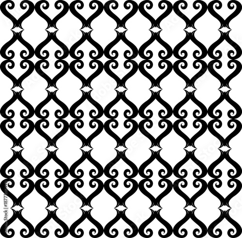 Fototapeta premium Seamless Black Symmetrical Flourish Pattern - Elegant Ornamental Design for...