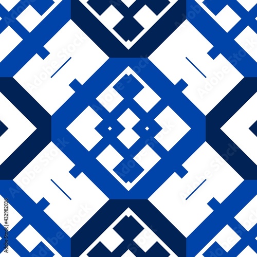 Obraz premium Seamless blue pattern. Blue and white geometric design background