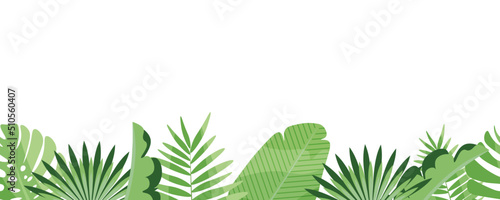 © Olha Ye, Naklejka premium Seamless border of tropical leaves. Vector image . Image on a white background.