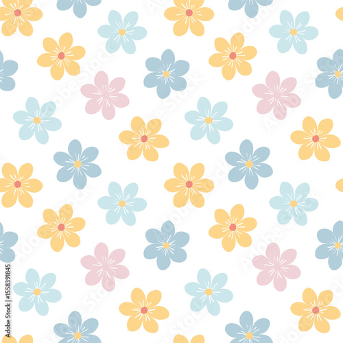 Obraz premium Seamless Botanical Pattern with Simple Flower Shapes