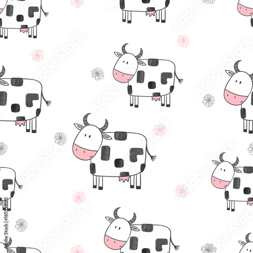 © Afanasia, Obraz premium Seamless cartoon cows pattern.