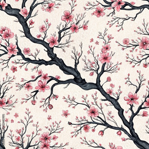 Fototapeta premium Seamless Cherry Blossom Patterns Textile Design Art Studio Elegant Vibrant...