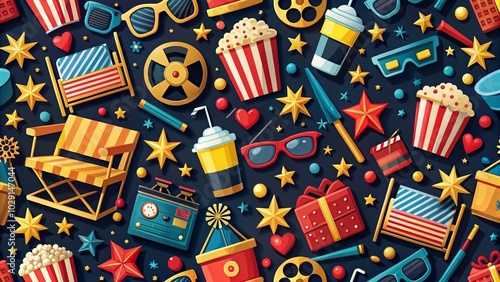 © Four888, Obraz premium Seamless Cinema Icons Pattern for Creative Projects and Design