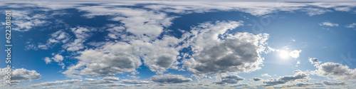 Naklejka premium seamless cloudy blue sky hdri 360 panorama view with zenith and clouds for use in 3d graphics or game development as skydome or edit drone shot or sky replacement