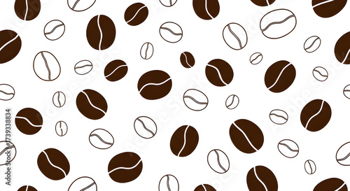 © Nasira's studio, Obraz premium Seamless coffee bean pattern background vector graphic for cafe menus or packaging design
