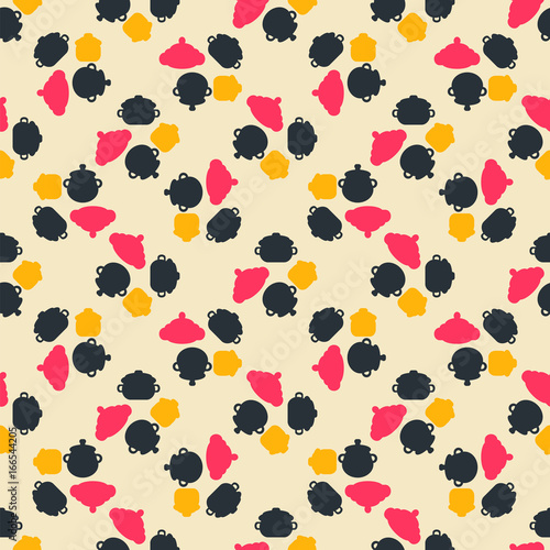 © beatwalk, Obraz premium Seamless colorful pattern. Vector background with flat style pot