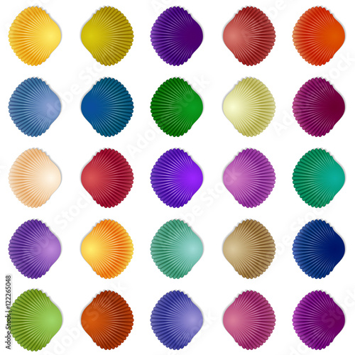 © josephine_art, Fototapeta premium Seamless colorful seashell template background. Vector illustration for your design