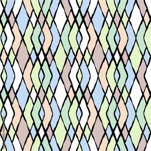 © brusnika9, Naklejka premium Seamless colorful zigzag pattern.Pink , green, blue vertical stripes on white.