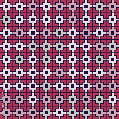 © Delennyk, Fototapeta premium Seamless crosses and dots vibrant contrast pattern vector background