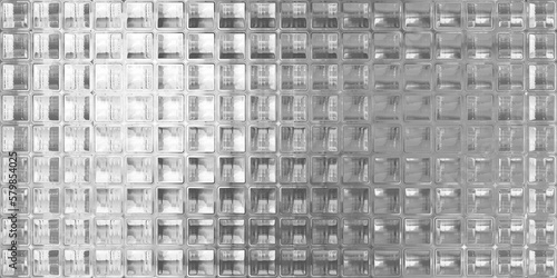 Fototapeta premium Seamless crystal cut glass block wall abstract transparent background texture overlay. Trendy vintage retro room divider pattern. Shiny reflective silver squares mosaic banner backdrop. 3D rendering.