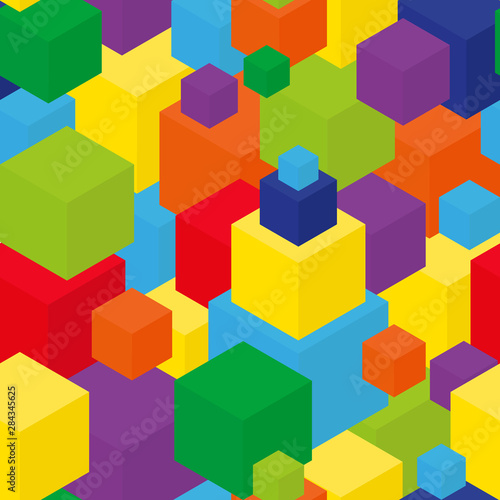 Obraz premium Seamless cube background. Color box isometric seamless pattern
