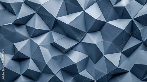 Obraz premium Seamless 3D Chambray Blue Wallpaper with Triangular Facets and Crystalline...