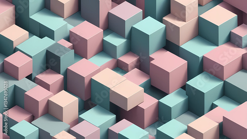 © Abdullah, Obraz premium Seamless 3D Isometric Cube Pattern in Soft Pastel Colors 3