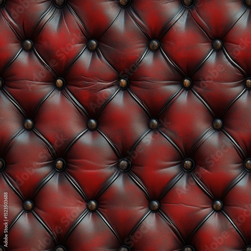 Fototapeta premium Seamless, deep burgundy leather capitone upholstery with robust button tufting and dark metallic accents, creating a timeless and rich texture perfect for classic backgrounds and elegant design