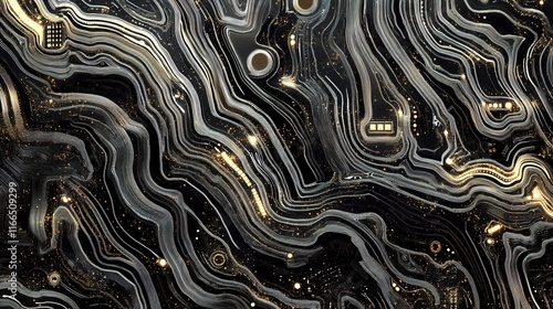 Fototapeta premium Seamless Digital Texture with Flowing Lines and Circuit Patterns