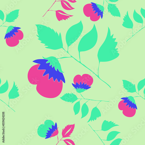 © bicicletta, Obraz premium Seamless doodle colored branches.Hand drawn.