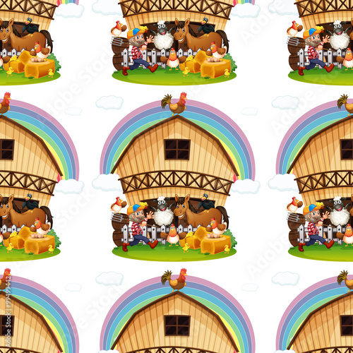 © GraphicsRF, Obraz premium Seamless farmer and farm animals