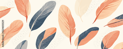 © Sanych, Fototapeta premium Seamless feather pattern vector with soft earth tones.