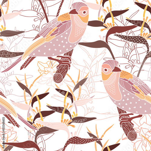 © tets, Fototapeta premium Seamless floral pattern with birds