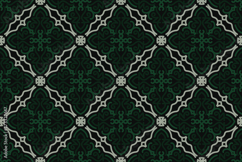 © Ahmad Taufiq, Naklejka premium Seamless floral pattern with black, green and grey color. Vector illustration.