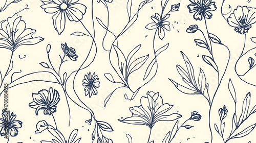 Naklejka premium seamless floral pattern with flowers - Modern Abstract Botanical Line Art...