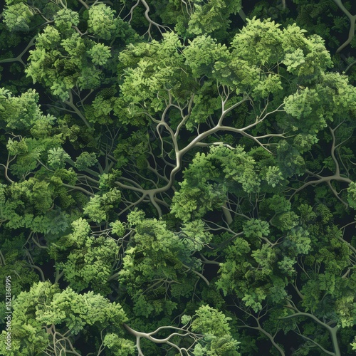 Naklejka premium Seamless Forest Canopy Pattern from Bird’s-Eye View..