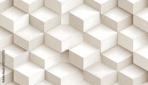 © louis, Obraz premium Seamless Geometric Cube Pattern Minimalist White 3D Background