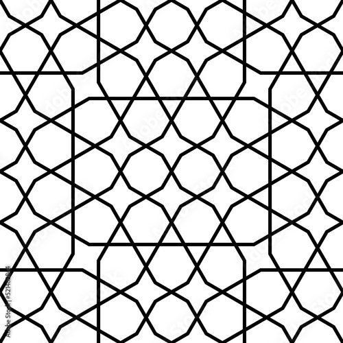 © Aleksei, Naklejka premium Seamless geometric ornament based on traditional islamic art. Black and white.