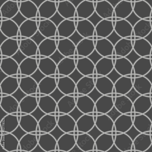 © D2SP , Naklejka premium Seamless geometric pattern, consisting of layered white lines with overlapping circle shapes on a gray background. Suitable for graphic design, interior, textile, printing, etc.